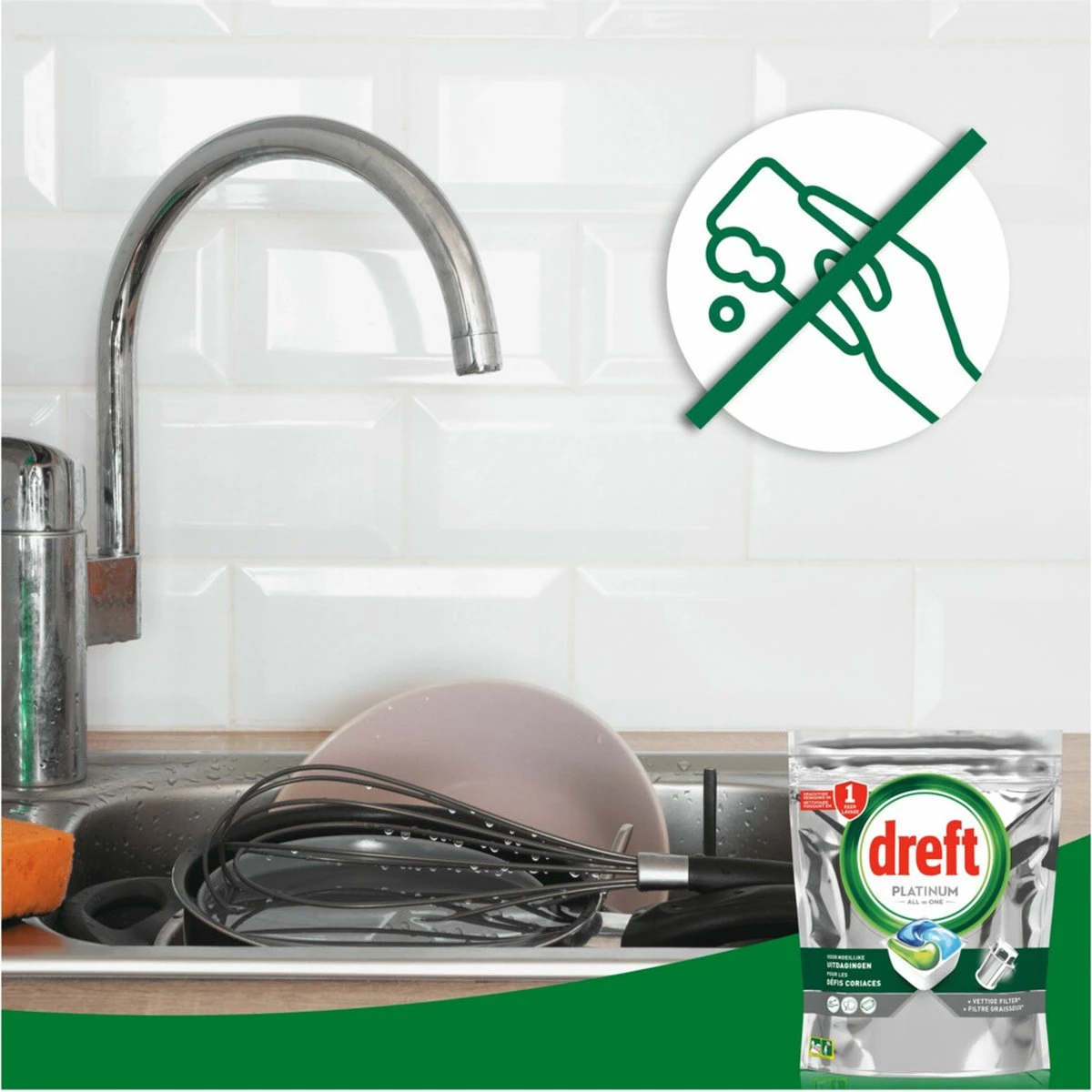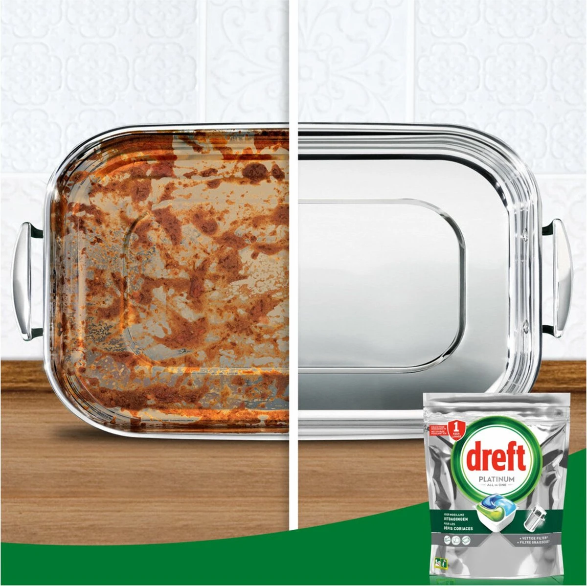 Dreft Platinum capsules pakken moeilijke schoonmaakproblemen de eerste keer aan