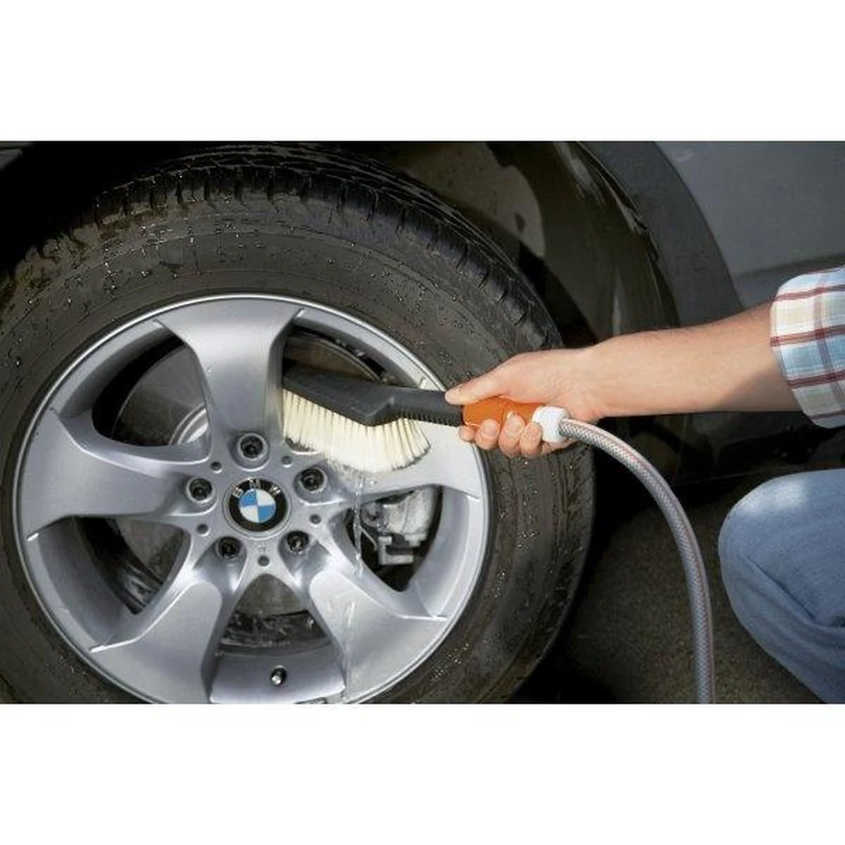 Met de kleine uitvoering van de GARDENA handwasborstel die op de watertoevoer kan worden aangesloten, in combinatie met een Original GARDENA System-aansluiting kunt u kwetsbare oppervlakken gemakkelijk reinigen, bijvoorbeeld tuinmeubilair, garagedeuren of voertuigen. Door de platte, smalle vorm komt u op alle smalle plekken en hoeken.