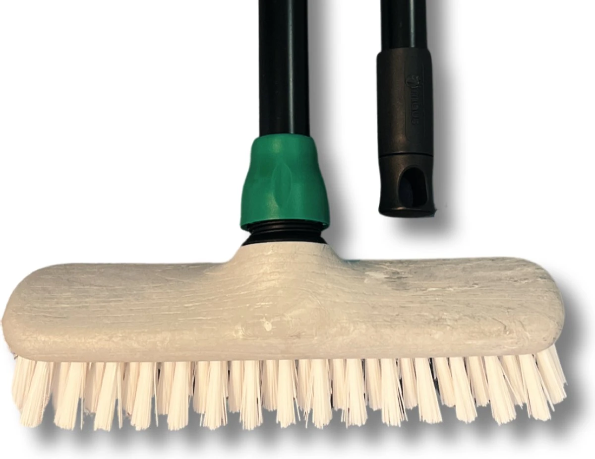 Ook de buik vol van schrobborstels waarvan de steel steeds eruit valt? Dat is vanaf nu verleden tijd. Met deze MAUS set schroeft u de steel in de houder. Daarna draait u als extra vergrendeling de groene koppeling aan. Een gegarandeerd stevige verbinding. Ook de steel zelf is op stevigheid ontworpen van a-kwaliteit staal. Een steeldiameter van 24 milimeter maakt deze steel extreem robuust. De zwarte coating geeft de levensduur nog een extra boost. Door middel van het ophangoog hangt u het gereedschap na gebruik handig op.
