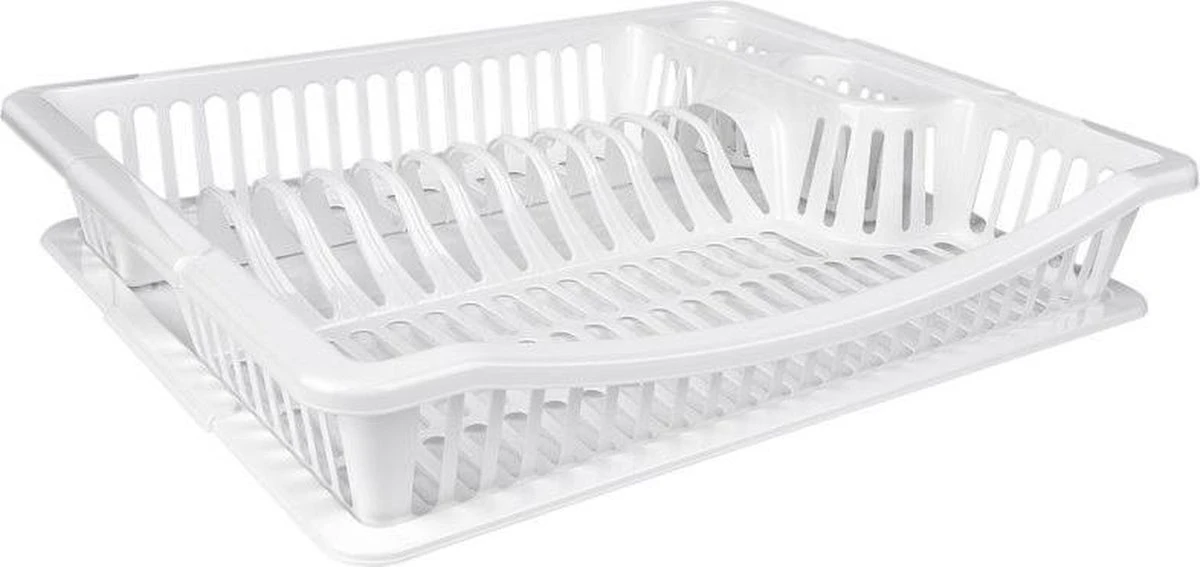 Merkloos Wit Kunststof Afdruiprek Met Lekbak 36 Cm – Huishoudelijke Artikelen – Afwasrekken