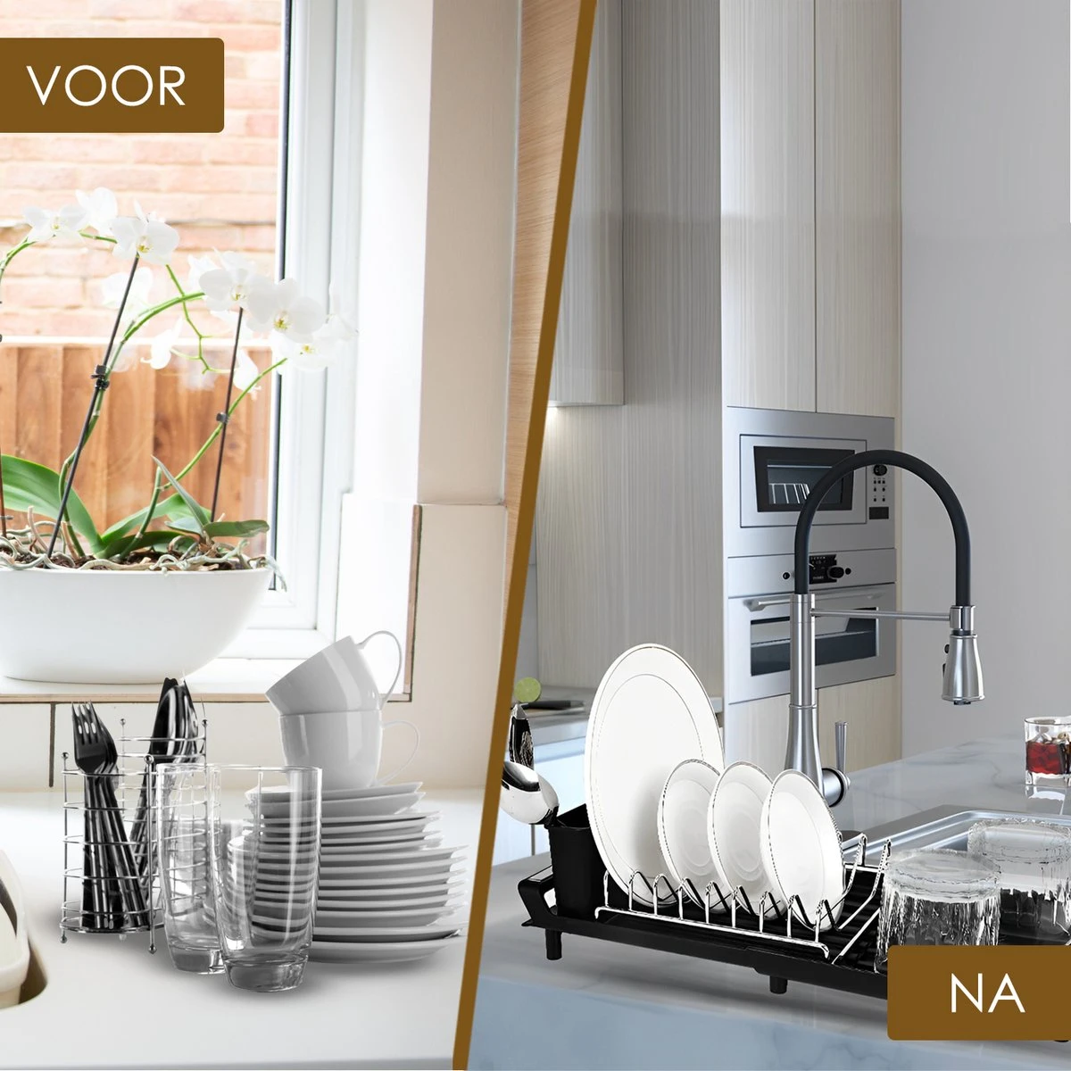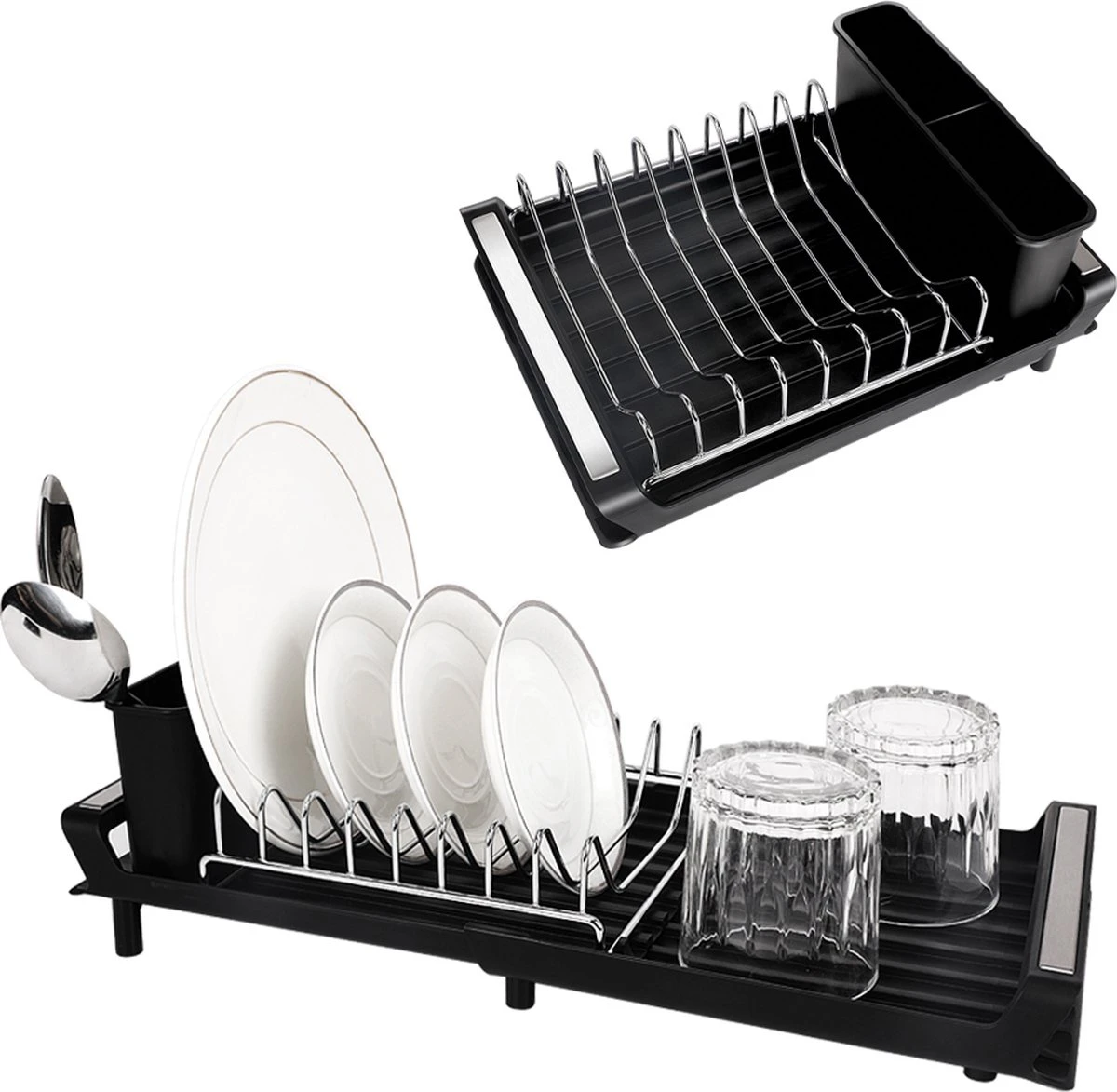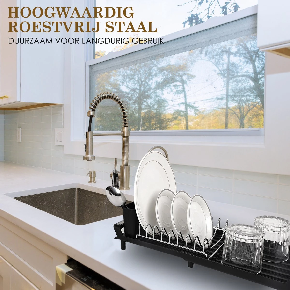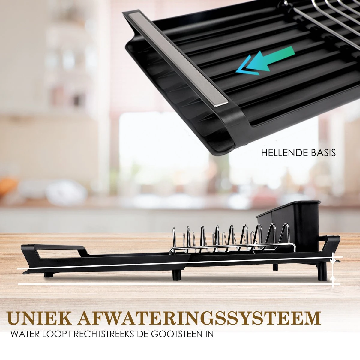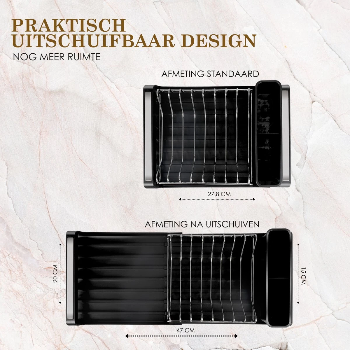 MIRI Afdruiprek – Afwasrek – Uitschuifbaar – Met Lekbak In Gootsteen – Afwas – Roestvrij Staal – Zwart