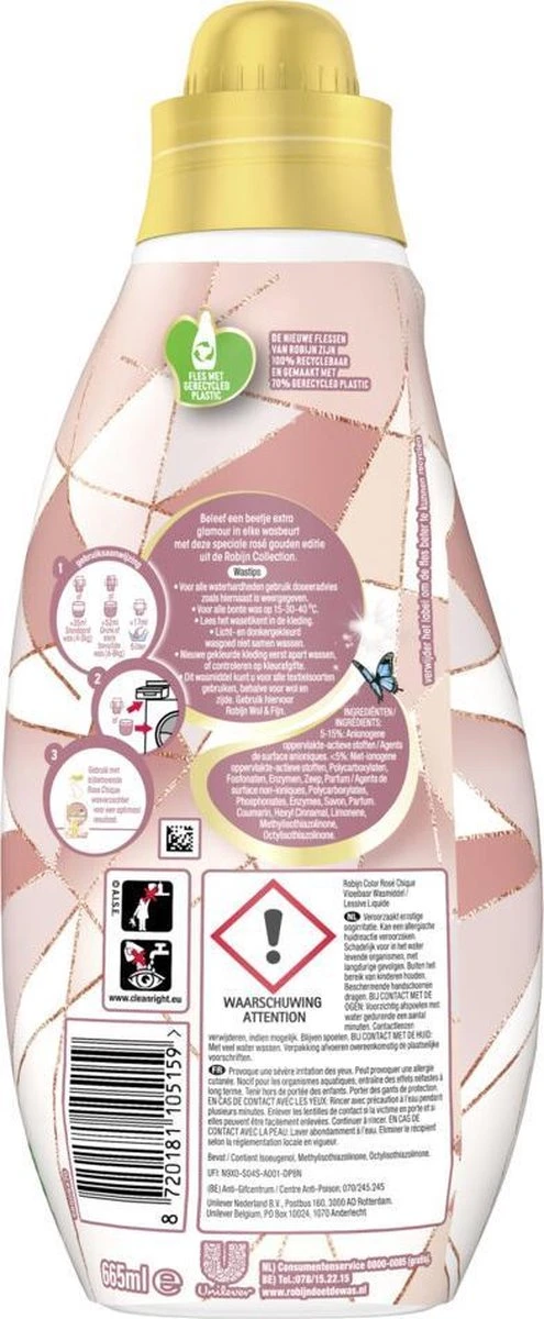 Robijn Klein & Krachtig Rosé Chique Vloeibaar Wasmiddel – 8 X 19 Wasbeurten – Voordeelverpakking