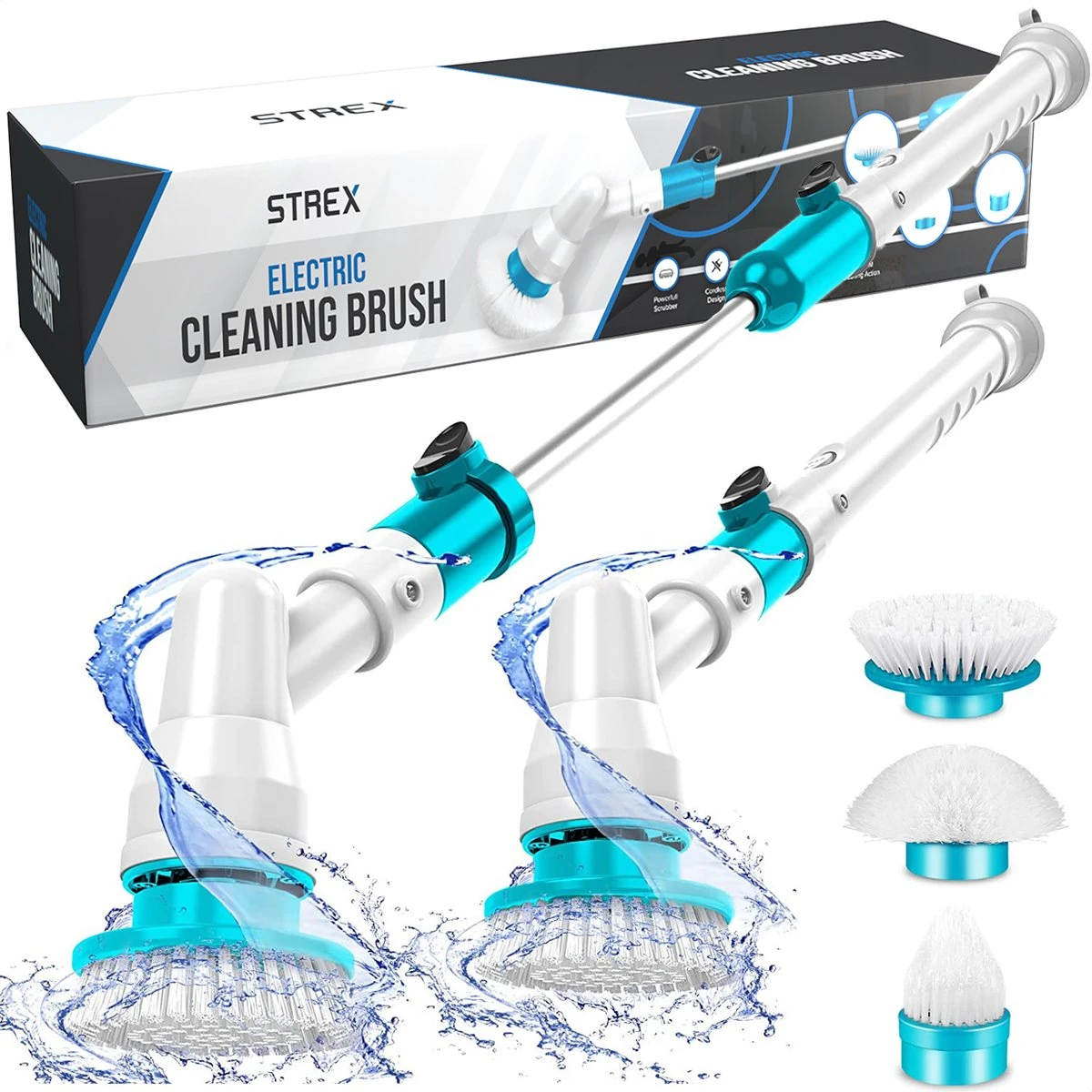 De elektrische schoonmaakborstel van Strex wordt geleverd met een uitschuifbaar roestvrijstalen handvat. Hierdoor kom je gemakkelijker bij hogere plekjes, maar vooral belangrijk is dat je niet in vervelende houdingen hoeft te zitten en dus geen last krijgt van je rug. Er worden drie opzetborstels meegeleverd. De extra brede en platte borstelkop wordt gebruikt voor vlakke oppervlakten. De ronde borstelkop is ideaal als reinigingsborstel voor de badkuip, de gootsteen of het toilet. De hoekborstelkop is perfect voor voegen, randjes, hoekjes en andere krappe plaatsen.
