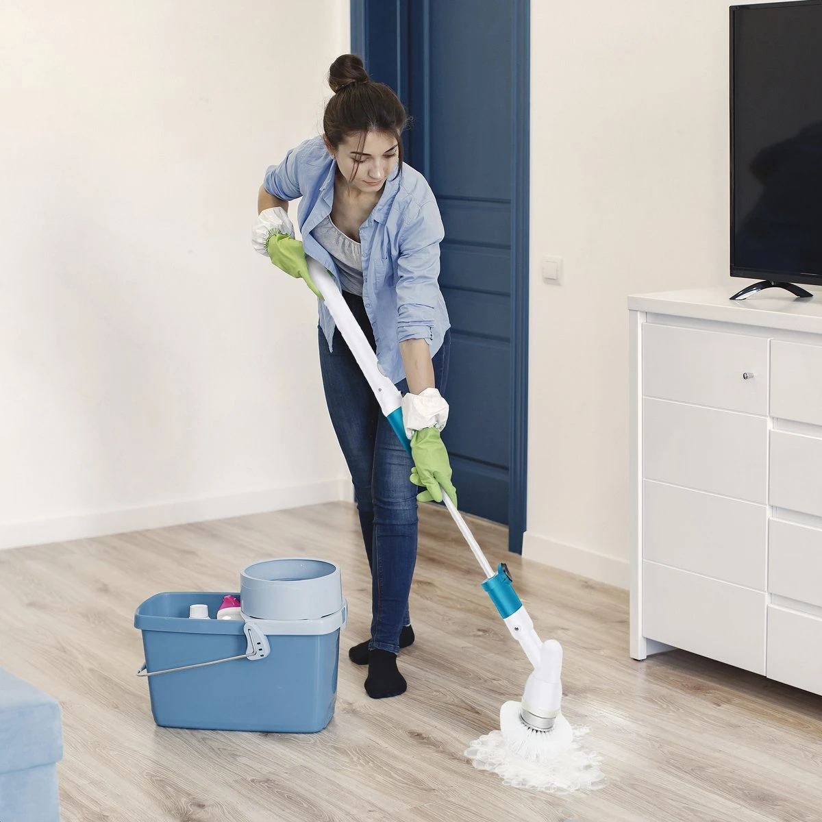 De elektrische schoonmaakborstel is zeer eenvoudig in gebruik te nemen. Je plaatst het gewenste opzetstuk en deze koppel je weer aan het roestvrijstalen verlengstuk. Dit geheel koppel je aan het handvat, waarna het schoonmaken kan beginnen. Het is ook mogelijk om de roterende schrobber zonder verlengstuk te gebruiken. Gebruik voor optimaal resultaat het juiste schoonmaakmiddel.